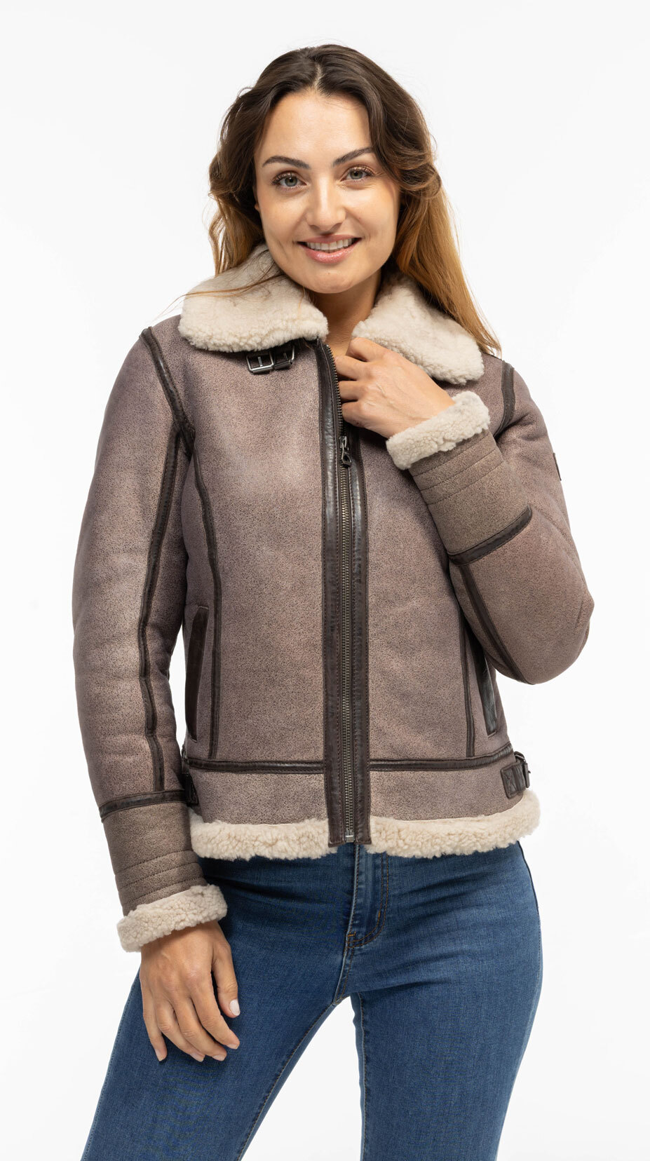 Chaqueta bomber de piel de oveja en color marron oscuro para mujer de la marca Gipsy. Nos encontramos con un corte regular y un estilo atemporal, ideal para la temporada de invierno. La bomber de mujer es el equivalente al modelo masculino con un corte mas femenino, es una prenda totalmente de piel de oveja, es decir, piel de oveja por fuera y lana por dentro (piel de oveja criada). La bomber de mujer tiene cuello camisero con hebillas y trabillas, 2 bolsillos inclinados en la cintura y bandas de cuero y varios pespuntes y trabillas de ajuste en los laterales.