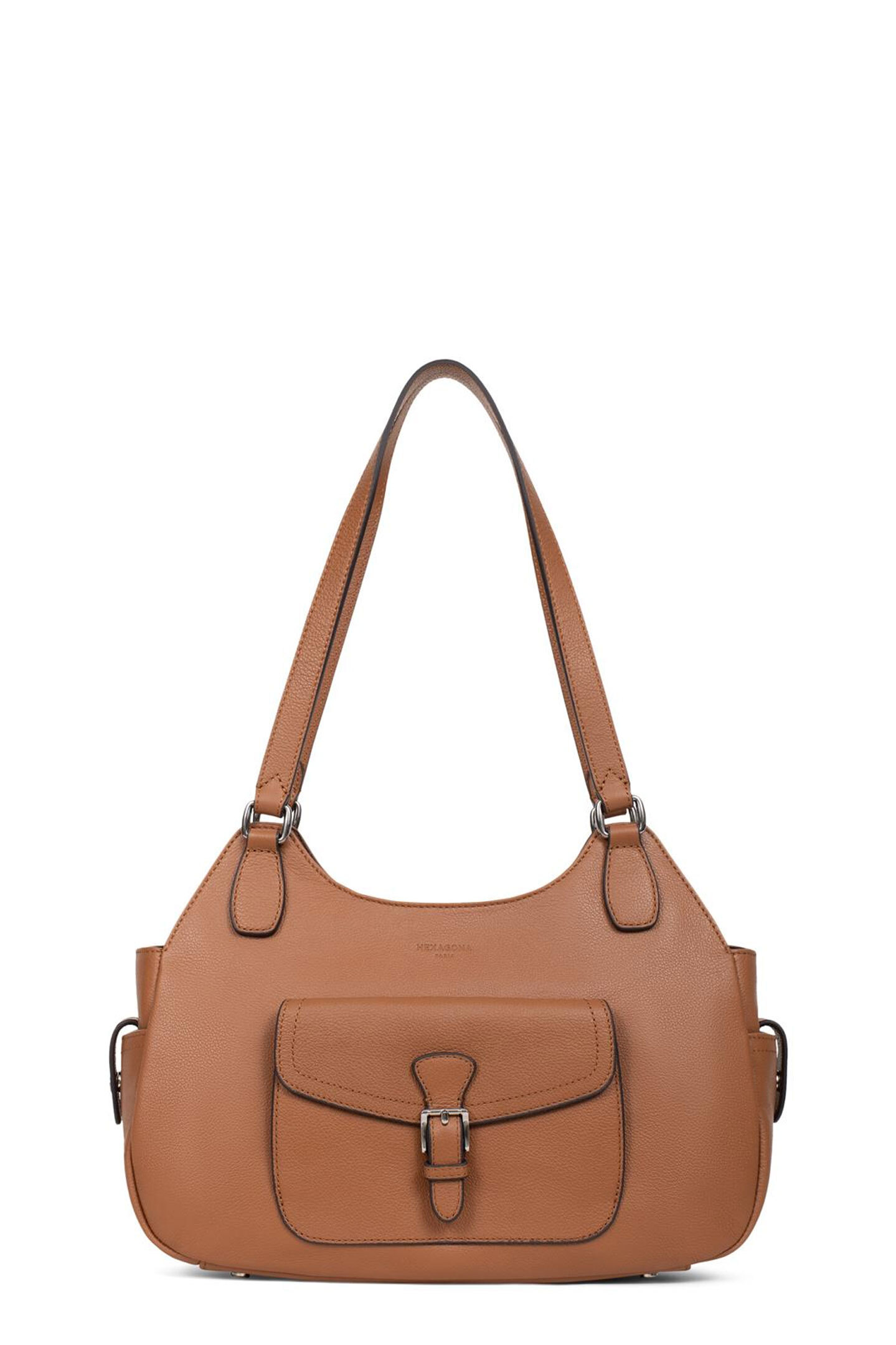 Bolso para mujeres con aspecto de grano de cuero de vaca de la marca Hexagona. Hay una bolsa de tamano mediano con una mirada bastante elegante y moderna al mismo tiempo. Hay 4 bolsillos en el exterior (2 en los lados con presion, 1 en la parte delantera con una aleta + un iman y 1 con cremallera en la parte trasera). La bolsa se usa en el hombro o a mano gracias a sus 2 asas. Tiene un acabado de metal en el nivel de accesorios, como presiones, rizos y cupulas debajo de la bolsa utilizada como refuerzos protectores para colocar la bolsa en el suelo. La bolsa de cuero Hexagona se cierra con una cremallera y se abre a un solo compartimento separado de un bolsillo con cremallera, también estan presentes varios almacenamiento en forma de bolsillos. El revestimiento es sintético y las dimensiones de la bolsa son: