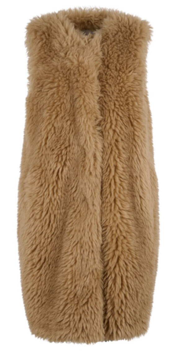 Chaleco de mujer de la coleccion Oakwood, esta confeccionado en efecto borreguito sintético de corte oversize. Se cierra con botones a presion invisibles y tiene dos bolsillos verticales, forro 100% poliéster.