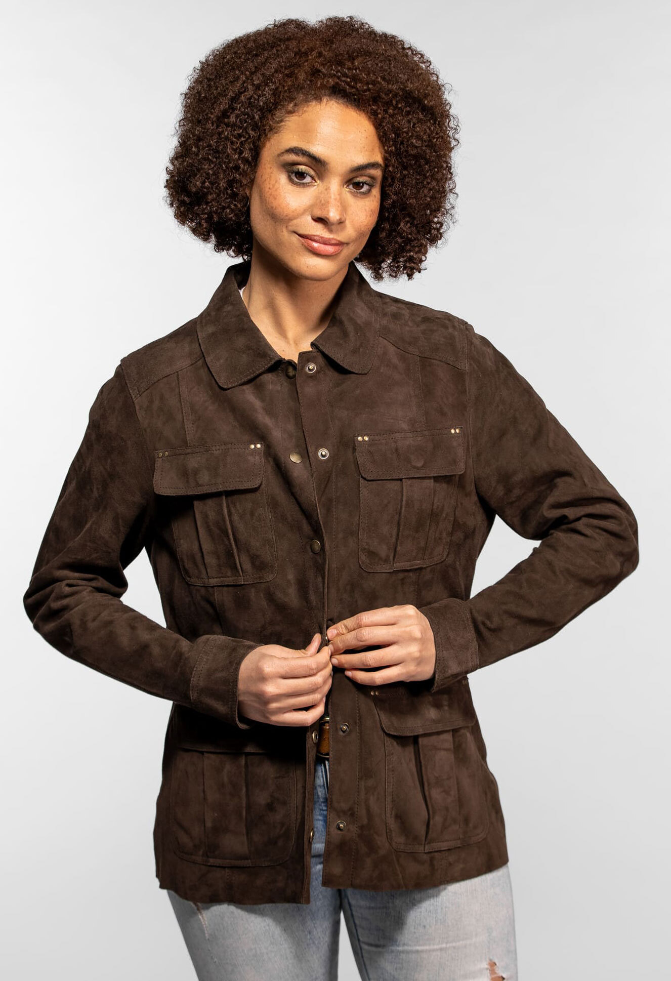 El cuero rigido a veces carece de la delicadeza necesaria para acompanar tus outfits de primavera u otono. Muchas veces buscamos esa pieza capaz de aportar textura sin apelmazar la silueta. La chaqueta de piel ante para mujer "Hazel" de Rose Garden ofrece esa caricia visual y tactil que faltaba en tu armario.