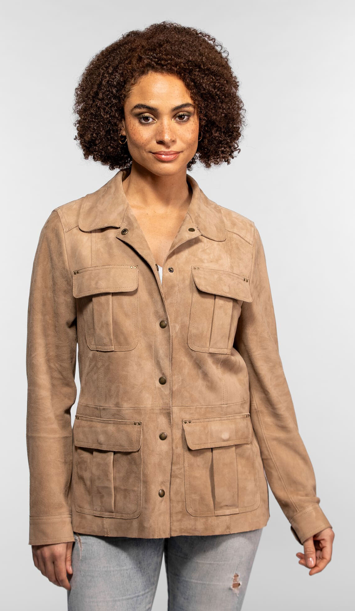 El cuero rigido a veces carece de la delicadeza necesaria para acompanar tus outfits de primavera u otono. Muchas veces buscamos esa pieza capaz de aportar textura sin apelmazar la silueta. La chaqueta de piel ante para mujer "Hazel" de Rose Garden ofrece esa caricia visual y tactil que faltaba en tu armario.