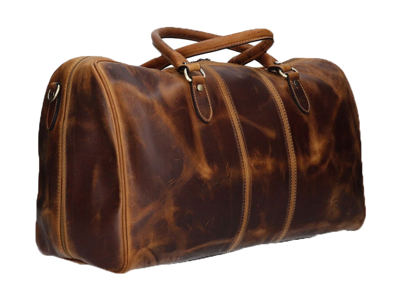 Esta bolsa de viaje de tamano generoso esta hecha de cuero italiano antiguo, un material que adquirira una patina elegante mientras viaja. Su amplio volumen y su bandolera ajustable lo convierten en el companero ideal para tus escapadas de unos dias, combinando robustez y un look clasico.