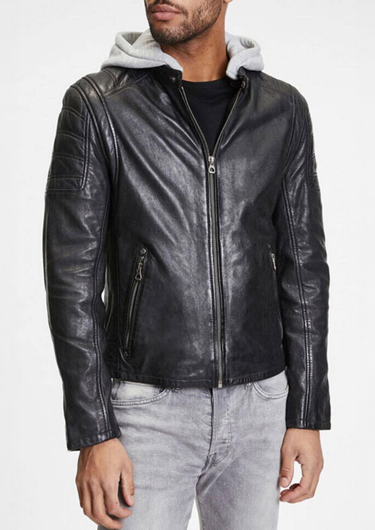 marca gipsy para la marca para hombres en cuero de cordero vegetal. El cuero es flexible, ligero, muy suave, patinada naturalmente. Su forro es algodon y sus mangas de poliéster. Tiene dos bolsillos interiores para llevar sus efectos personales a todas partes. Su corte es regular, una chaqueta comoda, muy bien, es 64 cms de longitud del cuerpo en un tamano m. La chaqueta de cuero tiene una capucha de algodon extraible, que le ofrece un lado deportivo relajado. Una vez retirado, usted con un pequeno collar de presion MAO, para un aspecto de motociclista mas, mientras sigue siendo elegante, ciudad. La chaqueta de cuero se cierra con una cremallera recta, hay dos prejuicios con cremallera. Tienes paneles elegantes con costuras en la parte superior de los hombros. En términos de tamano, hay piernas apretadas, en la parte baja de la espalda, un cifrado redondeado y mejor. En la parte inferior de la ronda, tienes Zips de facilidad.'