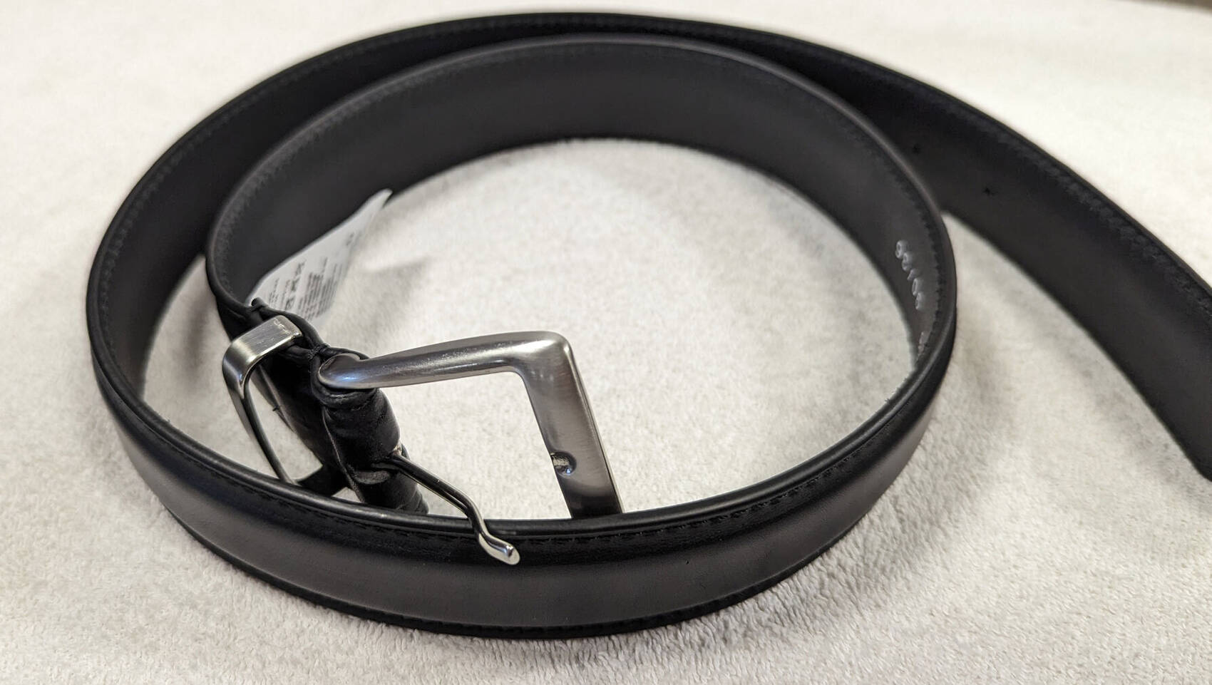 Cinturon de piel de vacuno negro para hombre de la marca Schott, hebilla en color plateado, trabajado en la parte superior sin dejar de ser elegante